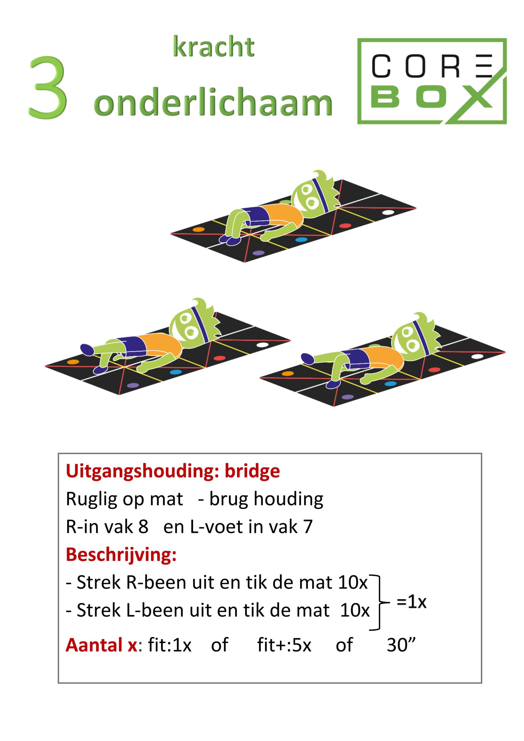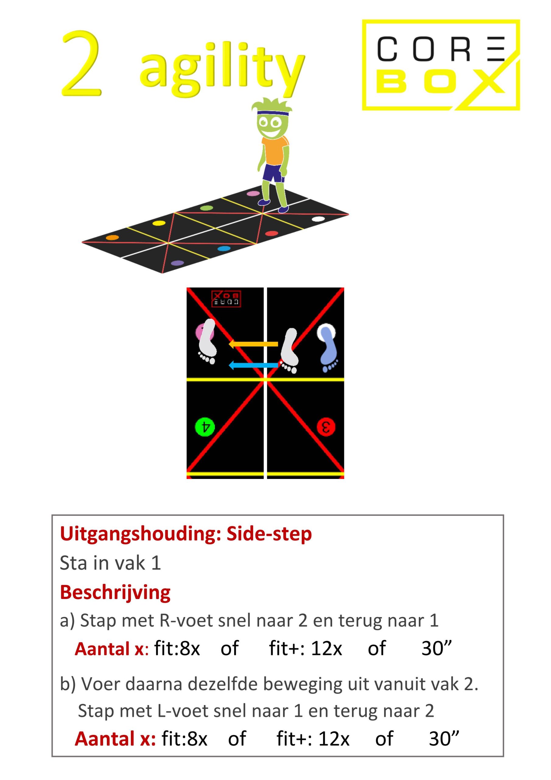 La CoreBox est un tapis à haute absorption des chocs comportant des lignes, des surfaces, des croix et des chiffres.